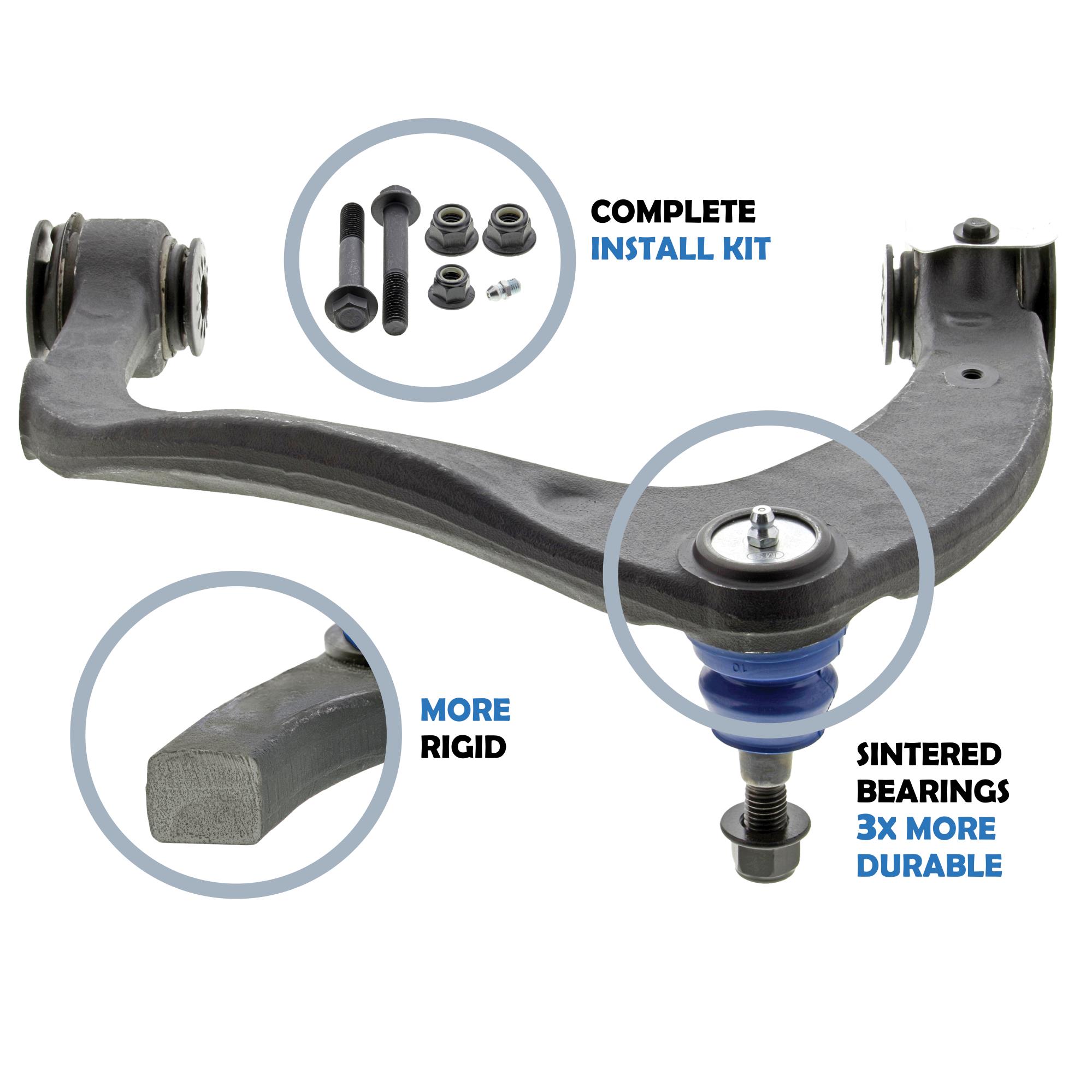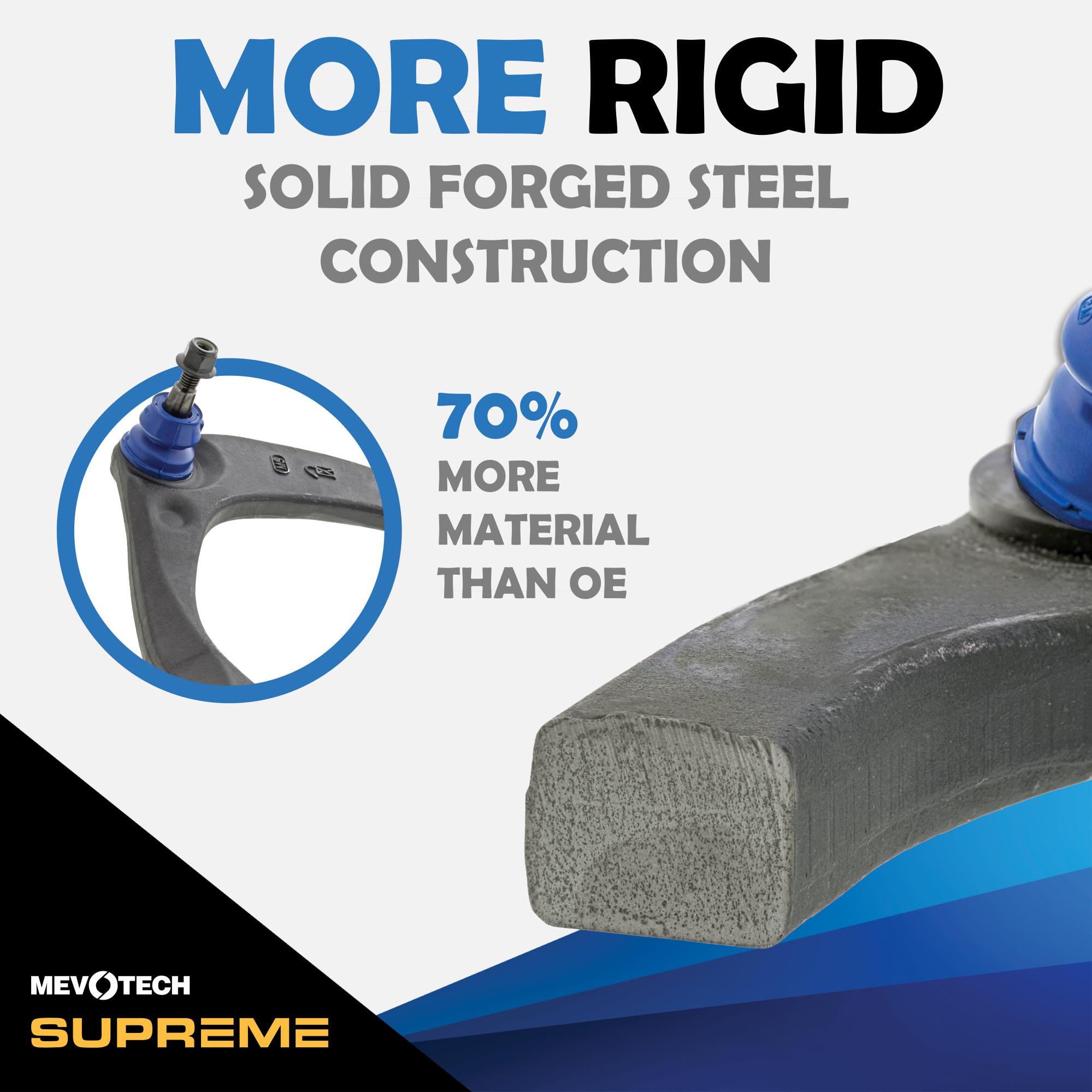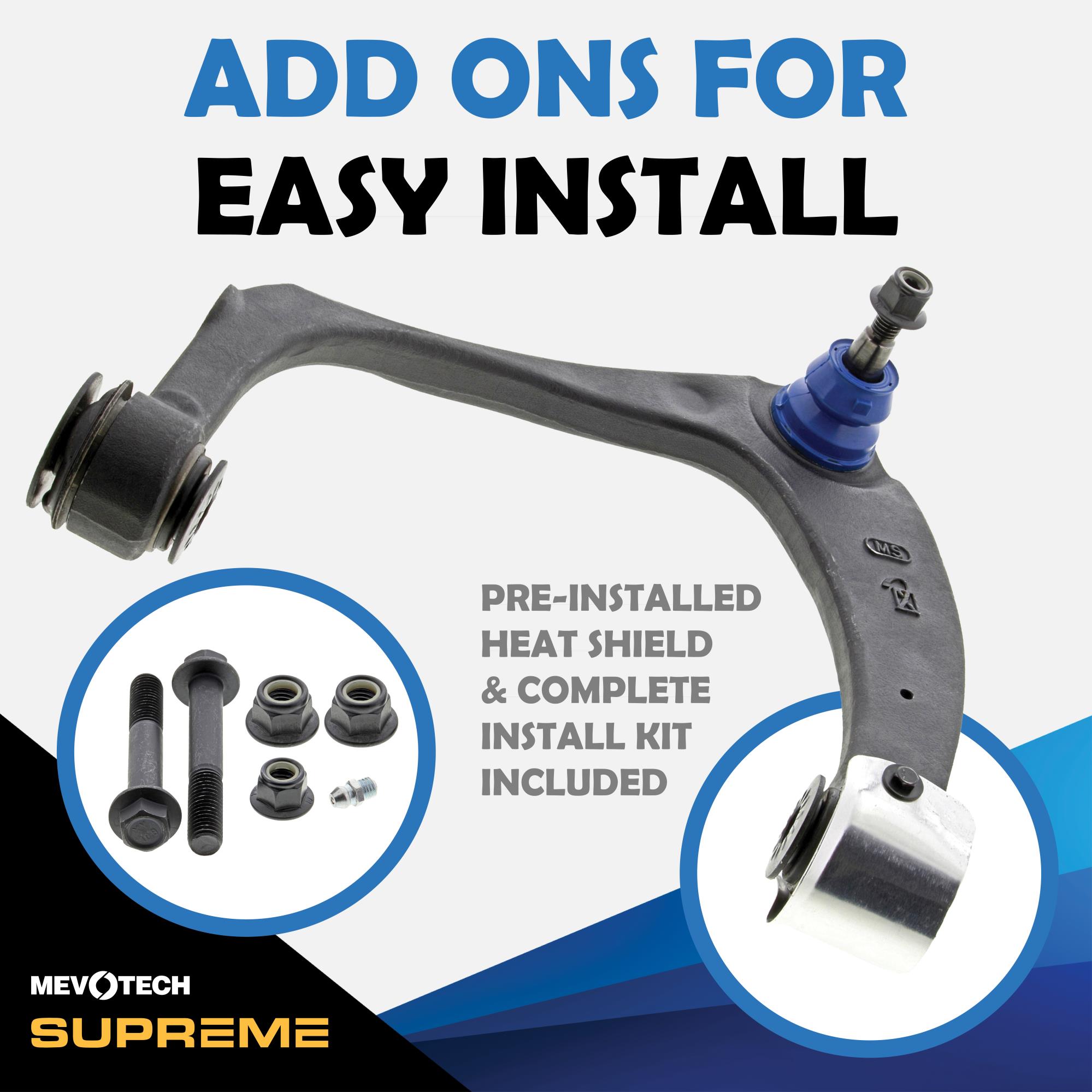 Mevotech Supreme Parts™ are engineered in-house, with application-specific upgrades for increased durability and performance. Mevotech Supreme control arms are built for high-usage commercial and passenger vehicles, SUVs, fleets and working trucks. Plus, innovative Labor Saver™ designs, tools and hardware make installations faster and easier.