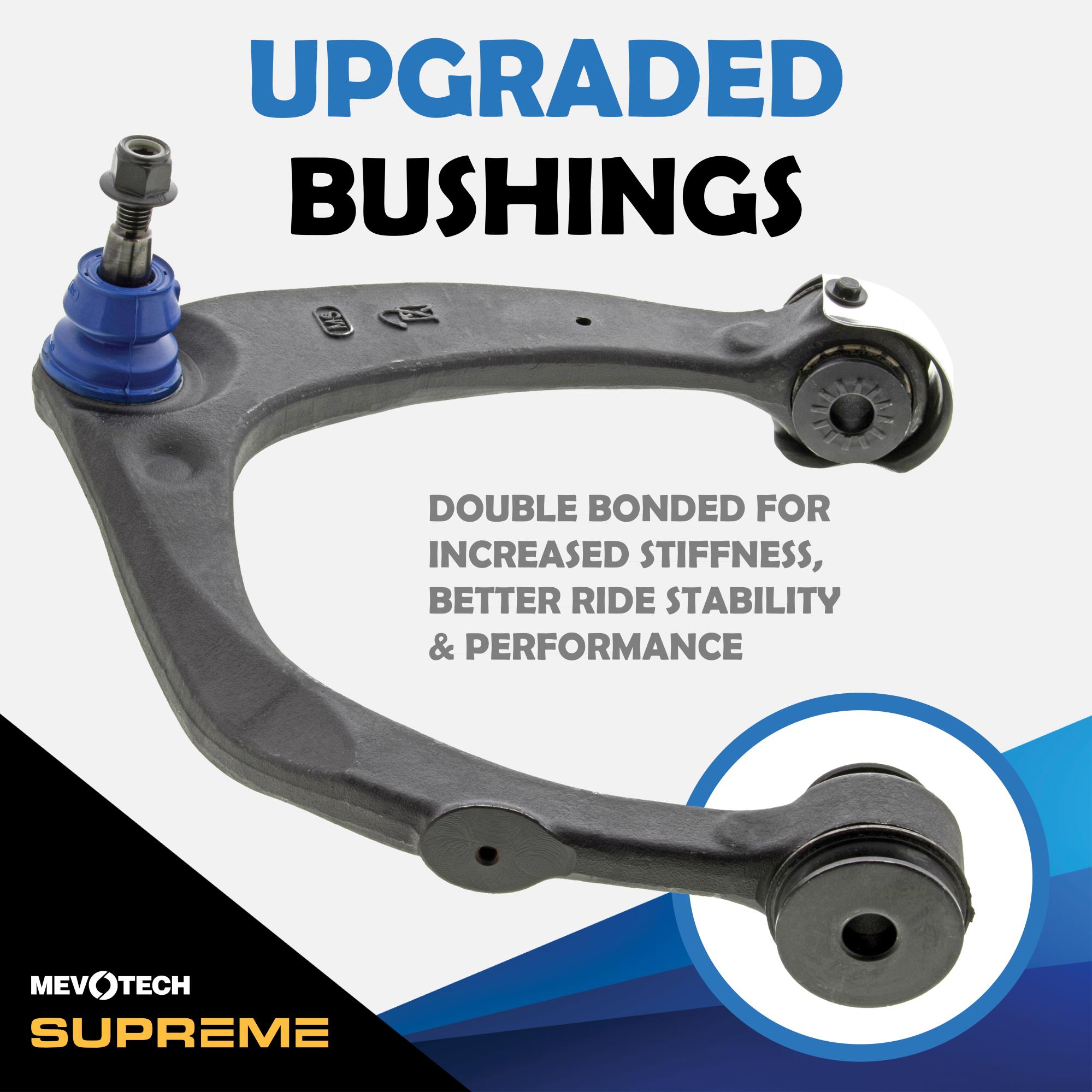 - INCREASED STIFFNESS: Improve handling with bushings upgraded with a double bonded for increased stiffness and durability.