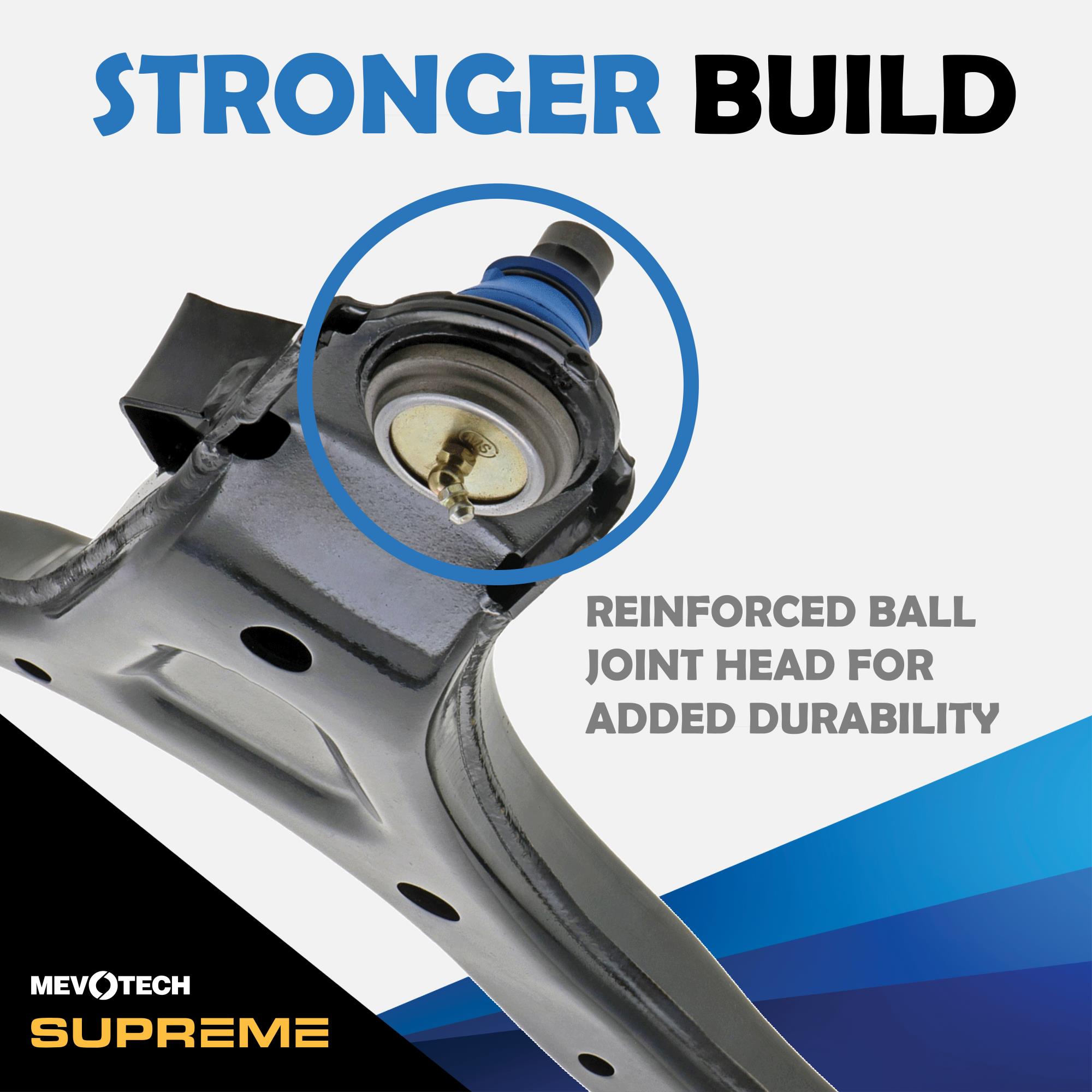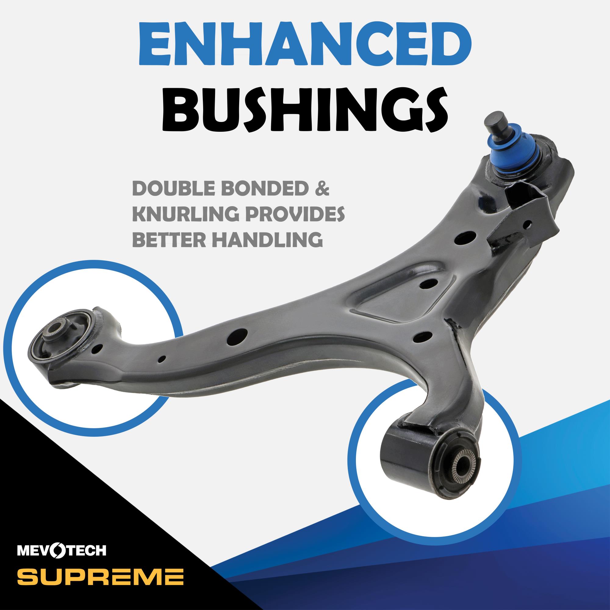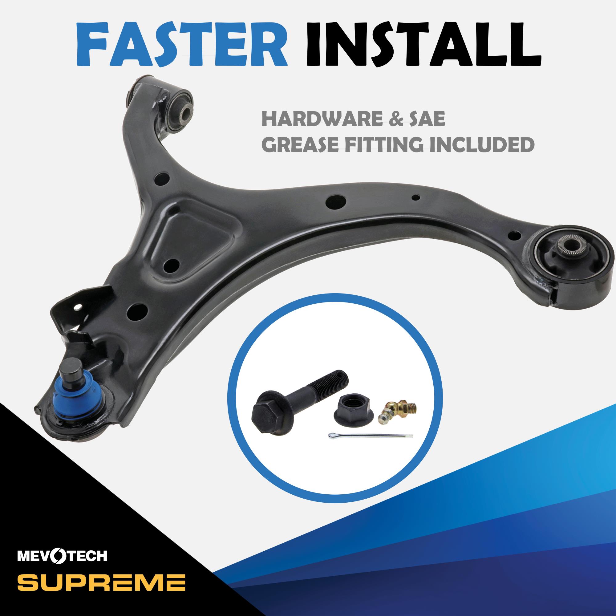 Mevotech Supreme Parts™ are engineered in-house, with application-specific upgrades for increased durability and performance. Mevotech Supreme control arms are built for high-usage commercial and passenger vehicles, SUVs, fleets and working trucks. Plus, innovative Labor Saver™ designs, tools and hardware make installations faster and easier.